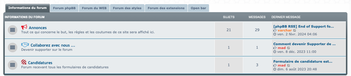 Affichage de l'index du forum